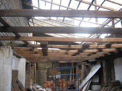 ![]() La Topa antes | ![]() Empezando la construcción de la Topa Tolondra. | ![]() Construcción y remodelación del segundo piso. |
